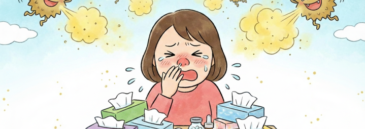 春になると多くの人がつらい症状に悩まされる、「スギ・ヒノキ花粉症」。今回は花粉症についてのお話をしていこうと思います。現在日本人の2人に1人は花粉症であるといわれています。花粉症の方の半数が20代までに発症しますが、50代以降の発症する方も12%いて、まだ症状が出ていない方も油断ができません。